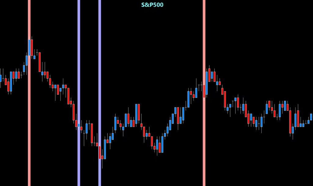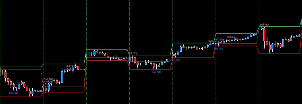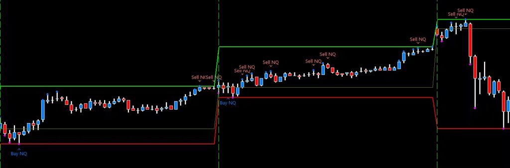 L'indicateur identifie automatiquement quel marché "lead" la session cash (celui qui fait les plus hauts ou plus bas en premier). Prenons l'exemple où le Nasdaq lead et que tu trades le SP500 : si le SP500 fait un nouveau plus haut mais que le Nasdaq n'en fait PAS, tu reçois un signal de vente 🔴. Inversement, si le SP500 fait un plus bas mais que le Nasdaq refuse de suivre, c'est un signal d'achat 🟢. Cette divergence indique que la force du mouvement s'essouffle.